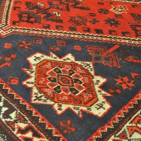 Erityistä: Klassinen Qashqai-matto, jossa laadukas, ainakin osittain kasvivärein värjätty pehmeä villa.