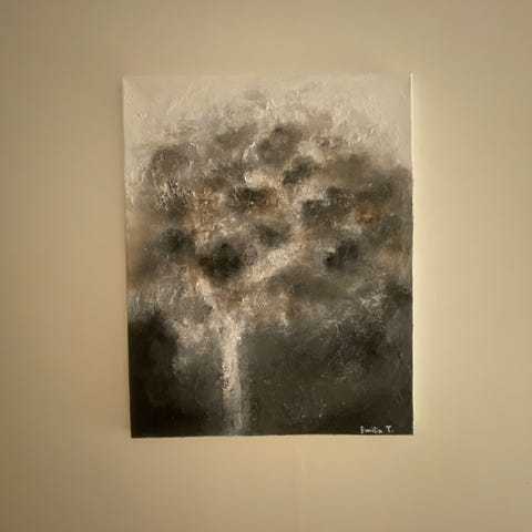 40x50cm kokoinen akryyliteos. Tekstuuri, akryyli kankaalle.