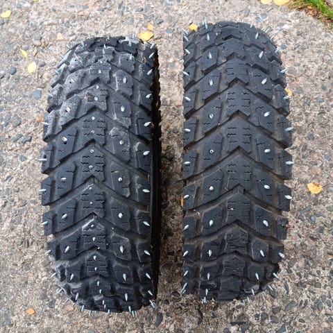 Myydään hyväkuntoiset nastarenkaat, 130/90-10, 120/90-10