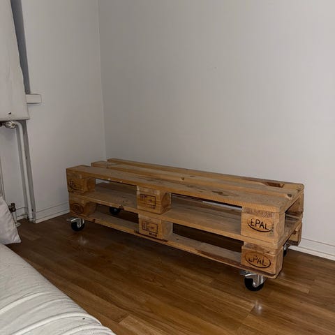 Tv-tasona käytetty kapeampi eurolava. Itse leikattu, hiottu ja lakattu. Vain nouto ruskeasuolta.
