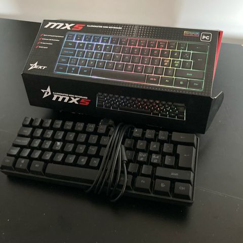 Next RX5 Mini -pelinäppäimistö sisältää punaiset mekaaniset huano kytkimet sekä 62 näppäimen Mini-muotoilun, joka säästää pöytätilaa. Lisäksi se sisältää monivärisen LED-taustavalaisun, USB 2.0 -liitännän ja pohjoismaisen näppäinasettelun.