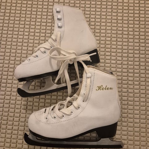 Luistimet koko 32. Yhden talven luistelut (eskariluistelut) luisteltu, eli todella hyvässä kunnossa. Mukaan saa vanhat kankaiset teräsuojat jos haluaa.