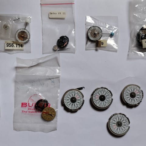 Siitäpä tarvitsevalle kaapin siivouksen ohella löydettyjä vintage/vanhoja, koneistoja ja kelloja vaikkapa harrastajalle. Muutama uudempiki koneisto mukana. Vetokelloista osa toimii myydään silti varaosiksi. Jos kysyttävää tai haluaa lisää kuvia niin rohkeasti viestiä vain. Jokin Omega taskukellon varaosa myös sekä Zenith kellotaulu.