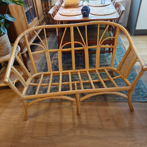 Rottinki-sohva harmaa väri, materiaali rottinki. Sopii sisä- ja ulkokäyttöön.