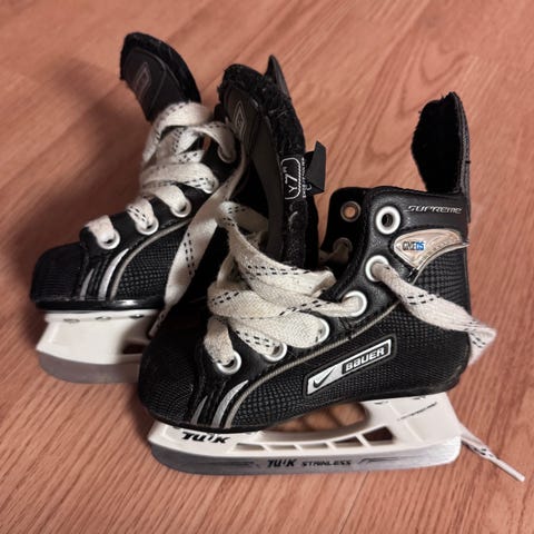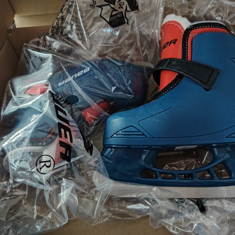 Bauer luistimet. Koko 25.nsisämitta n. 15,6 cm. Muutamasti luisteltu.