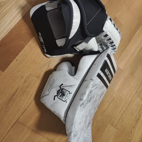 Bauer Vapor räpsä ja Reebok Xpulse Sr kilpi. Kummassakin reilusti kiekonjälkiä ja kuluneet, mutta muuten oikein hyvin pidetty. Luottokamppeet. Kaikki nauhat ja punokset kunnossa eikä repeämiä (kilven paria pientä viiltoa lukuunottamatta). Räpsää edellinen omistaja tuunannut omaan silmään sopivaksi. Nouto tai toimitus onnistuu pk-seudulla.