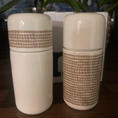 Myydään keraamiset Marimekko suola- ja pippuri myllyt. 50€ yhdessä tai 30€kpl