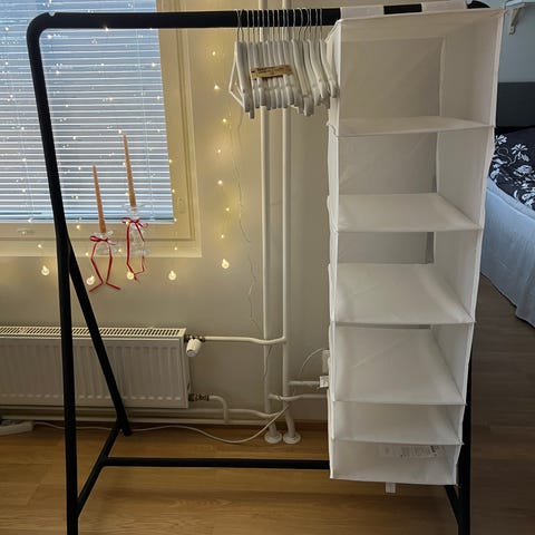 Myydään 2 kpl Ikean hyväkuntoisia RIGGA-vaaterekkejä. Voi ostaa myös yhden. Hinta 15€/kpl.