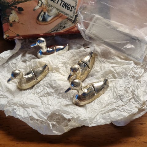 Kaksi Howard Smithin suunnittelemaa koristelintua. Valkoinen Arteosin valmistama, ja musta Arabian. Molemmat linnut yhdessä 150€, erikseen 80€ kpl.