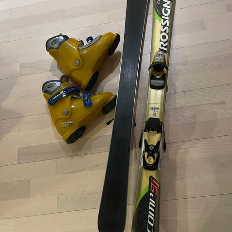Sukset Elan Race 110cm, monot Rossingnol Saphir merkinnät 285mm 24,5 ,kypärä CSIO SH 55/56-S