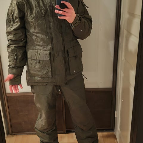 Myyn sadevaatesetin takki + haalarihousut TUMA nimiseltä yritykseltä, joka toimittaa varusteita Liettuan asevoimille. Tämä sadesetti LUSDO-79 on Liettuassa arvostettu äärimmäisestä kestävyydestään ääriolosuhteissa.