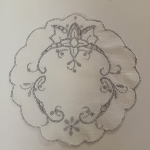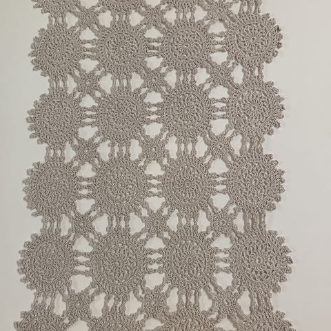 Ohuesta langasta virkattu pyöreä liina. Kaunis kesäisessä kahvipöydässä.