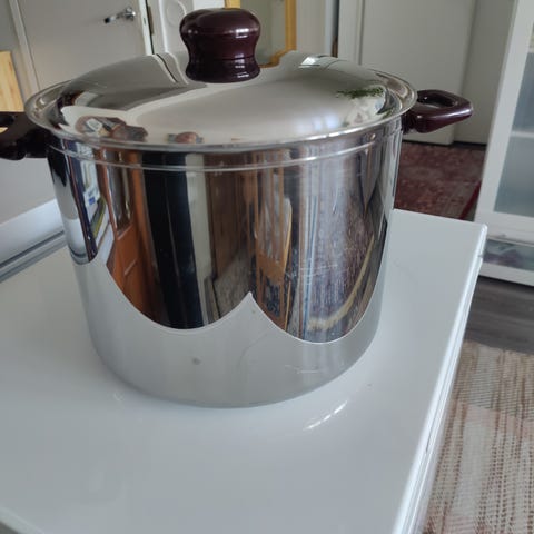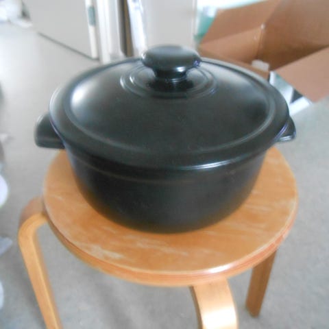 Uudenveroinen keraaminen kattila, jossa ruoka ei pala pohjaan. Tilaavuudeltaan kattila on noin 4-5 litraa.