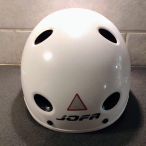 Jofa luistelukypärä pinkissä värissä. Koko M (51,5-55,5cm) Sisäpuoli on pehmustettu ja siinä on säädettävä leukahihna turvalliseen istuvuuteen.