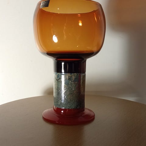 Ehjä ja hyväkuntoinen signeerattu Pokaali, korkeus 15 cm. Myös ruskea myynnissä. Arabia Nuutajärvi. Myyn vain noutona.