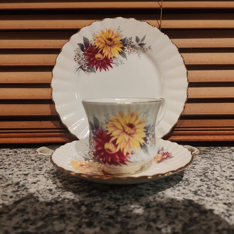 Keräilyharvinaisuus! Royal Stafford True love teekuppi/kahvikuppi, asetti sekä kakkulautanen. Nämä ovat peräisin 60-luvulta. Englannista suoraan keräilijältä tilattu käyttämätön setti. Näitä ei ole usein tarjolla. Ollut vitriinissä säilytyksessä.