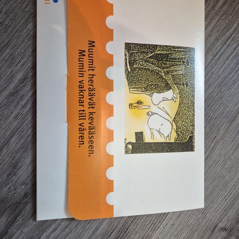 ”Muumilaakson kesä” postimerkit vuodelta 2007, keräilyyn tai käyttöön, ikimerkkien arvo 11 euroa. Kulkee kirjemaksulla tai nouto Pori.