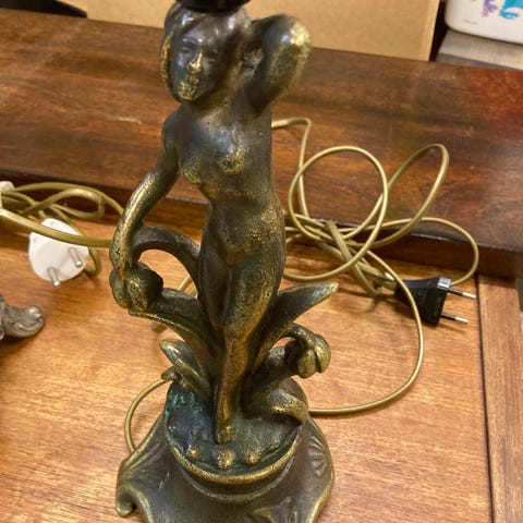 Tämä onyx-pohjainen messinkinen pöytälamppu on erinomainen esimerkki elegantista muotoilusta ja laadukkaasta käsityöstä. Lampun jalka on valmistettu kultatusta messingistä, ja siinä on massiivinen onyx-pohja, joka on asetettu kolmeen kynsi-jalkaan. Mielestämme kappale on yleisesti ottaen hyvässä alkuperäisessä kunnossa, ja siinä on alkuperäinen johdotus.
