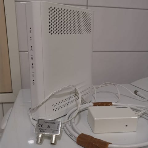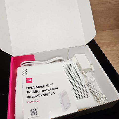 DNA Mesh WiFI F-3896 valkoinen kaapelimodeemi, mukana virtalähde ja kaapelit. Myydään ainoastaan noudettavana.
