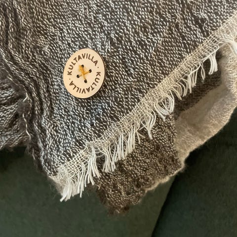 • Yksityiskohdat: Brodeerattu kuvio, hapsut päissä