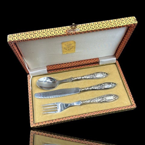 Hopeinen Empire -sarjan kauha, molempikätinen, Kulakeskuksen valmistama, hyväkuntoinen