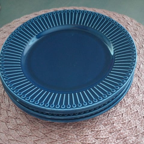 Myydään 10 kpl Ikea Strimmig-lautaset, väri sinisen harmaa. Ollut käytössä, joten kulumajälkiä ”syömäpinnassa”, muuten erittäin siistissä kunnossa. Hyvät arkilautaset!