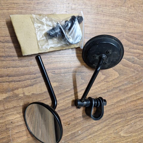 Uudet tangonpääpeilit. Pari erikokoista sovitetta tangon sisään.