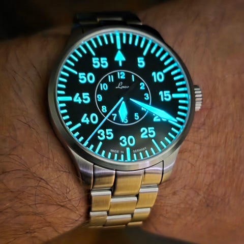 Caliber: Laco 24 (Basis: ETA 2824.2 (Elaboré), 25 jewels, hacking second