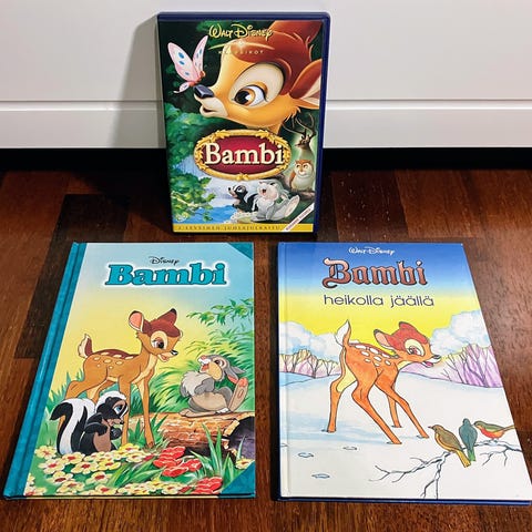 Ensimmäinen satukirjastoni Bambi piilosilla. Katso myös muut ilmoitukseni Alle 5 euron ostokset voi noutaa,, yli 5 euron ostokset voin myös lähettää matkahuollon pakettina.