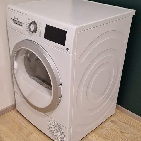 Lisäksi kylkeen Bosch Serie 6 -pesukone, käytetty ja ikääkin on, mutta toimii edelleen. Etuosasta alaosan pyöreä paneeli hävinnyt matkan varrella, mutta se ei menoa haittaa.