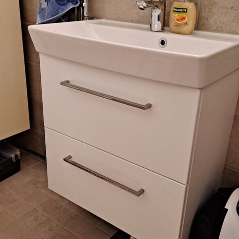 Kuvan mukaiset wc kalusteet, allaskaappi, allas, hana, korkea kaappi sekä peili. WC pönttö ei kuulu kauppaan. Myydään kaikki kerralla, voidaan purkaa valmiiksi. Myös toimitus Pirkanmaan alueelle pientä korvausta vastaan