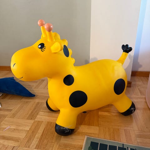 Pehmeä hyppylelu kirahvi, ns pomppueläin.