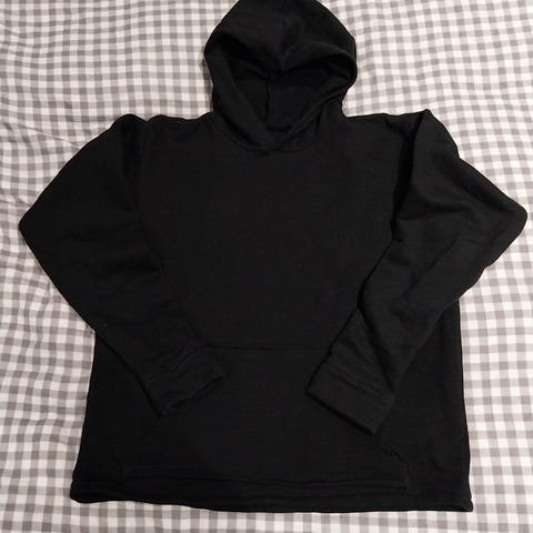Myydään musta lasten huppari. Edessä taskut. On ollut hetken käytössä mutta edelleen ihan siistin näköinen, ei ole esim nukkaantunut yhtään. Näitä taitaa olla kaksi samanlaista, tämä ilmoitus on paita #1.