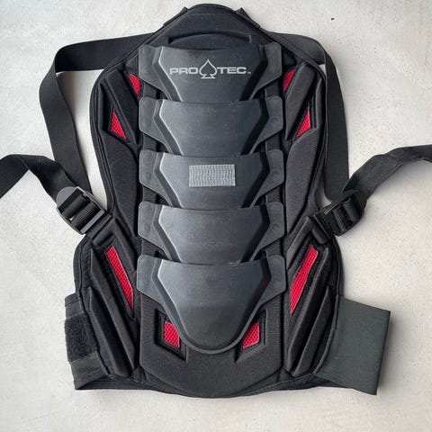 Dainese merkkinen selkäpanssari esim lumilautailuun, moottoripyöräilyyn. Miesten koko. Liikkuva alaosa, hyvä tukeva vyötärökuminauha ja olkanauhat myös venyy ja säätyy.