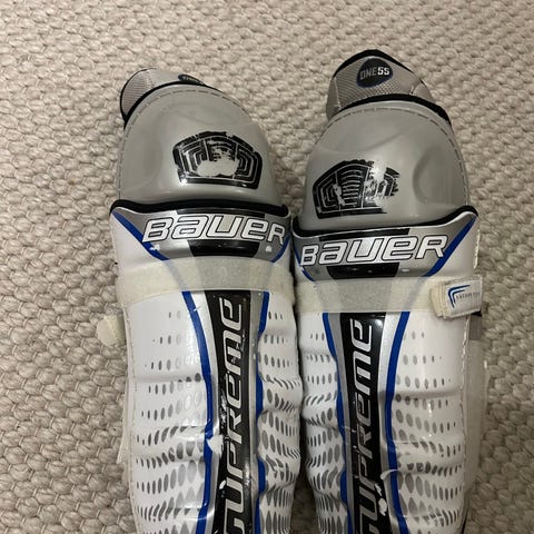 Bauer One55 jääkiekon kyynärsuojat, jotka tarjoavat suojaa kyynärpäille ja käsivarsille. Suojien rakenne on suunniteltu jääkiekon vaatimuksiin sopivaksi.