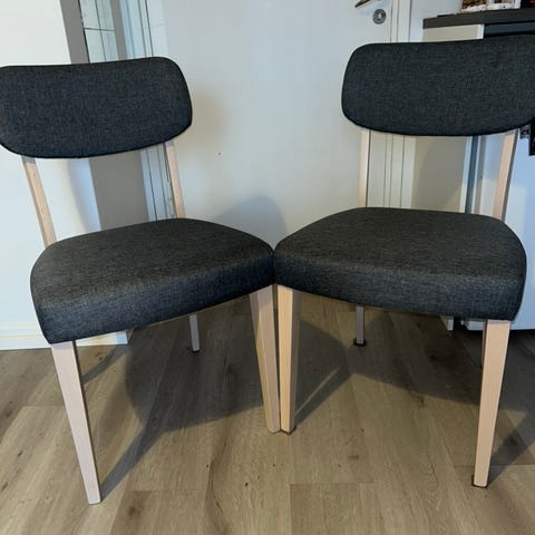 Myydään käyttämättömät 2kpl ADORA tuolit 49x58xH85,5cm, istuimen korkeus 50cm. Tuolit on valmistettu massiivipyökistä. Istuin ja selkänoja on verhoiltu ja päällystetty harmaalla polyesterikankaalla. Puiset osat on viimeistelty puunsävyisellä valkoisella lakalla. Painoraja 100kg.