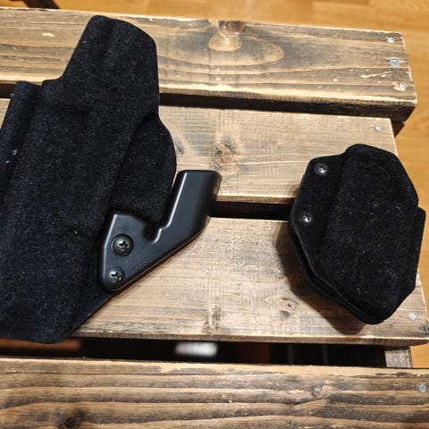 G-code RTI pikalukituskotelo ja vyöadapteri glock 17 gen 5 mallille. Voi toimia myös gen 4 mallille mutta tästä ei ole varmuutta (gen 5 on aavistuksen leveämpi). Kitkakotelossa ruuvisäätö. Saa säädettyä erivahvuisille vöille. Ollut käytössä 50mm korkeassa vyössä.