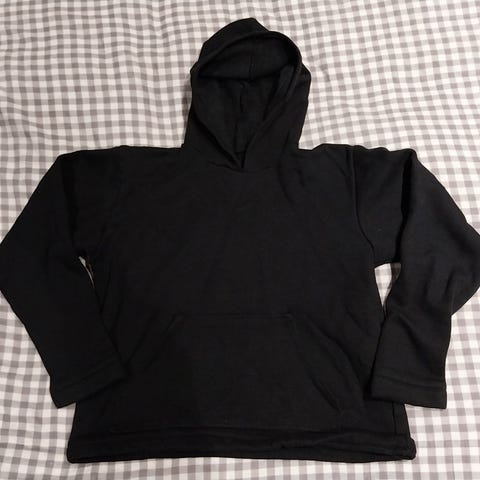 Myydään musta lasten huppari. Edessä taskut. On ollut hetken käytössä mutta edelleen ihan siistin näköinen, ei ole esim nukkaantunut yhtään. Näitä taitaa olla kaksi samanlaista, tämä ilmoitus on paita #2.