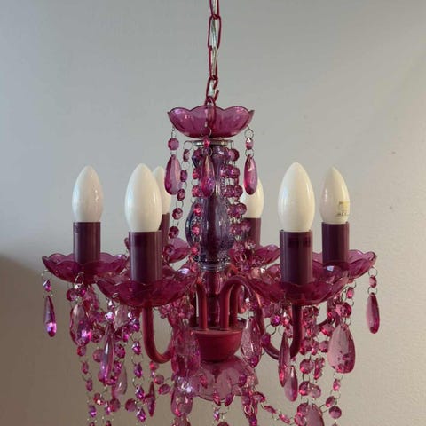 Myydään tarpeettomana musta kattokruunu kolmella lampulla ja prismoilla.