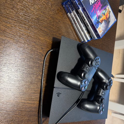 Sony Playstation 4 pro pelikonsoli, kotelo musta, standardikoko. Pelikonsoli on tarkoitettu Playstation 4 -peleihin ja sisältää tarvittavat liitännät.