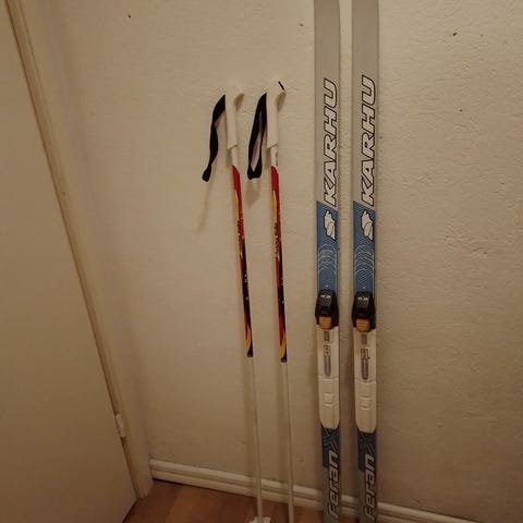 Sukset 147cm ja sauvat 110cm