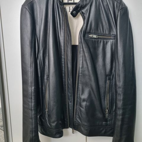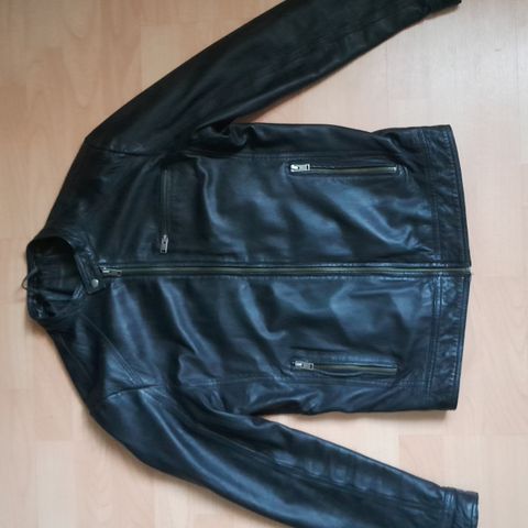 Selected nahkatakki mustassa värissä, miesten koko S. Takki on valmistettu nahasta ja soveltuu ulkoilukäyttöön.