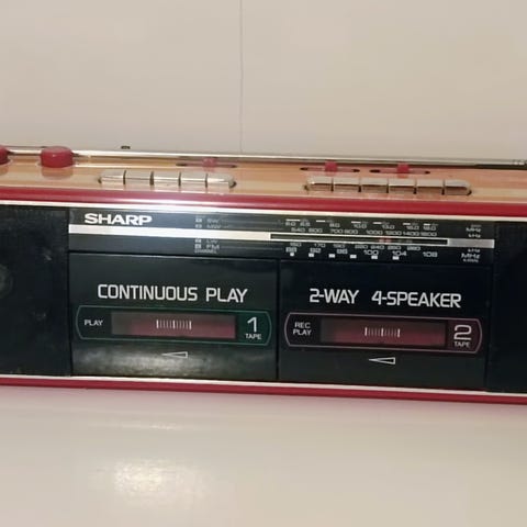 kasettisoitin sharp pitkämällinen pienikokoinen kätevä,radio soi hyvin anteeni ehja, kasettipuoli ei toimii mootori pyörii hyvin, ala kulmassa on sanomista kuvassa sen huomaat.