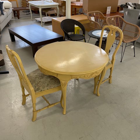 Pyöreä valkoinen puinen Rokokoo pöytä koristekaiverruksilla