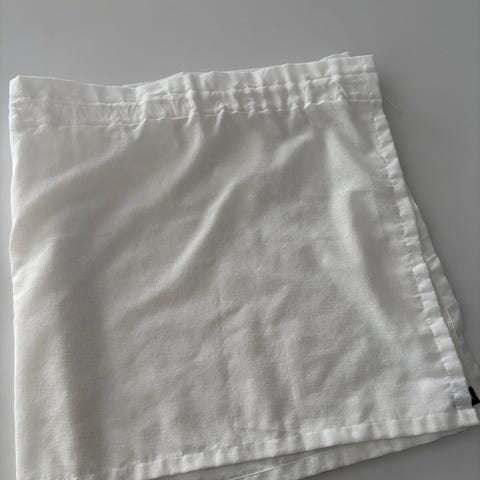 Vallilan sinisävyinen kappaverho. Vuoden ikkunassa ollut. Hyvä kunto, mutta pesussa etenkin reunoista väri haalistunut.