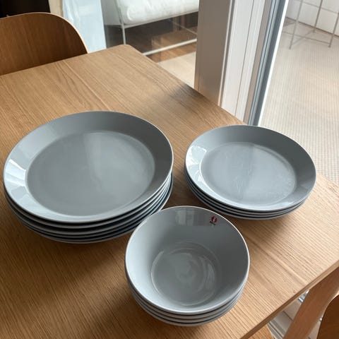 Astiastoon kuuluu 5kpl iso syvä lautanen, 5kpl pieni lautanen, Isot ja pienet syvät on myyty.