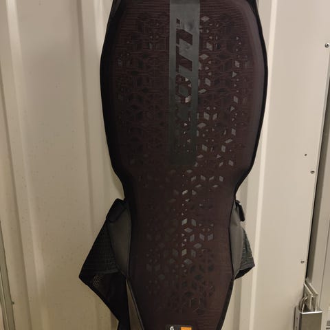 Hyväkuntoinen, kevyt ja hyvin hengittävä selkäsuoja lasketteluun.
