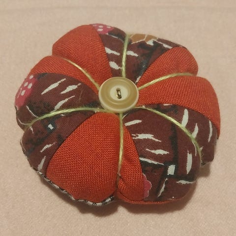 Käytetty pieniä kankaanpaloja, lankaa ja vanhoja yksittäisiä nappeja. Vanulla täytetty.