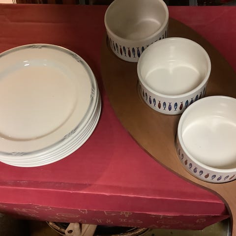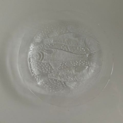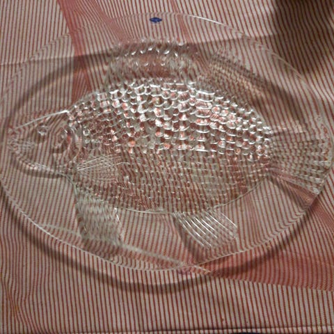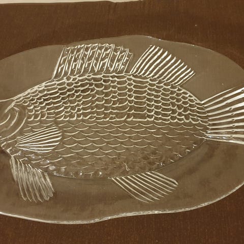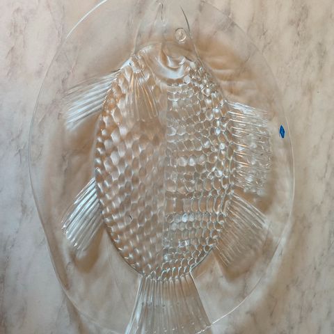 Inkeri Toikka Nuutajärvelle. Kala tarjoiluvati n. 42cm x 31cm, paino n. 1,8kg. Hyväkuntoinen, ei käytön jälkiä.