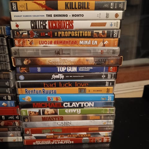 DVD-elokuvia yhteensä 48kpl (osa sarjaa, sinkkuelämää tuotantokaudet). Suurin osa lasten leffoja. Kaikki kerrallaan ja nopea nouto Salpakankaalta. Eläintalous.